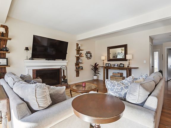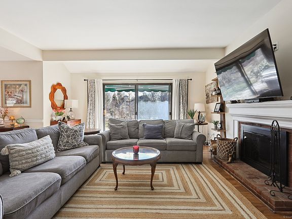 This pristine unit was completely renovated in the last 3 years, with amazing quality and attention to detail. There's plenty of privacy and only one small threshold to enter. The kitchen and bathrooms were gutted and beautifully fitted with tile, quartz counters, and stainless appliances. The sunny living room, with wood burning fireplace, has sliders to a private slate patio with an awning, where you can grill and add your own plantings. The dining room has a gracious chair rail and chandelier, with room for a large table, then through to the kitchen with a space for a table. The primary bedroom suite is huge, with 3 closets and a stunning new bathroom with stall shower. Down the hall, another gorgeous bathroom with tub is shared by 2 more bedrooms. Closets are large and plentiful, and the nearby 1 car garage has storage space as well. The location at the top of the hill feels open and lush, and there's even a pool at the top! Come take a look at this sparkling unit a get ready to enjoy spring there! Spectrum cable is included in the HOA