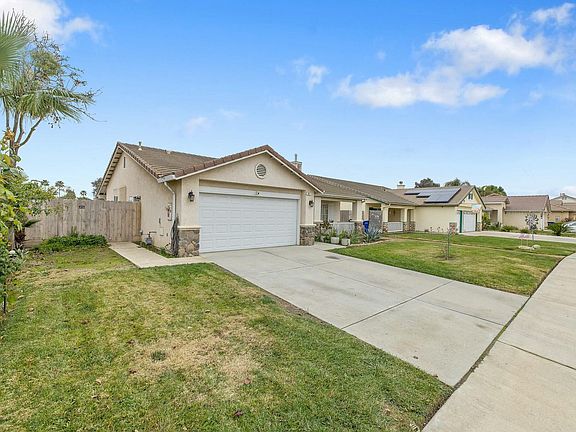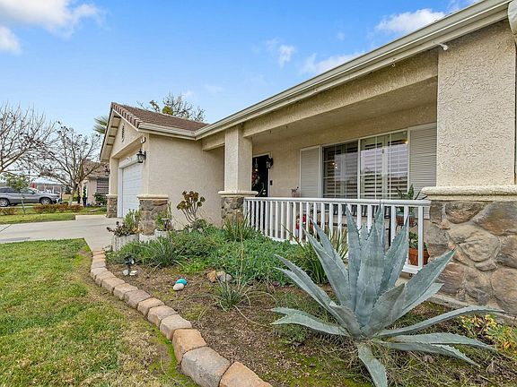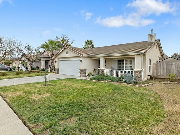 Welcome to the North Hanford home that you've been waiting for! Located in the highly coveted Kings River Hardwick school district and with updates throughout, this home is ready for its new owners. With an inviting open floor-plan leading from the living room to the kitchen and dining room, it's great for entertaining or a cozy night at home in front of the fireplace! The living room and kitchen boast vaulted ceilings opening up the space. Kitchen has been updated with designer tile counters and backsplash, and cabinets have been recently re-painted. The two guest rooms are clean and spacious and boast natural light. The primary suite features a large walk-in closet and a spacious room with vaulted ceilings. The interior laundry room and extra storage closets are sure to impress. Enjoy the covered patio and spacious backyard area with extra concrete and oversized side yards. This is a great opportunity for a first time buyer or savvy investor!
