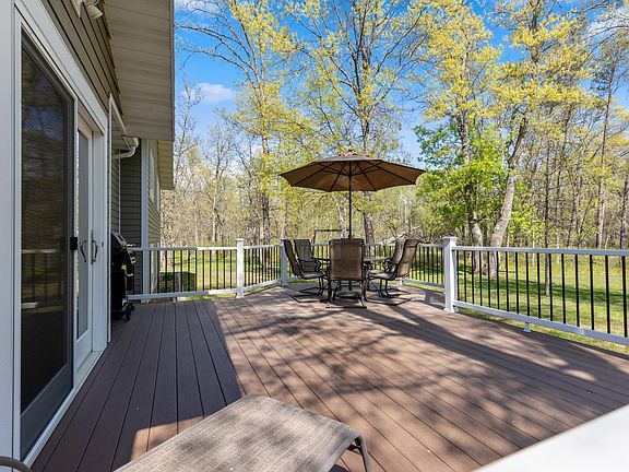 This pristine one-owner home offers unmatched privacy and tranquility on 2.5 acres of wooded privacy on a serene cul-de-sac in the Pillager school district. The exterior features durable cement board siding, concrete edging, a concrete driveway, and a maintenance-free deck. Inside, enjoy oversized rooms, solid hardwood floors on the main level, open concept for entertaining, cozy gas fireplace in the vaulted den and incredible storage space throughout. You will love the spacious owner's suite with an ideal walk-in closet, a jetted tub, and a separate shower, as well as main floor laundry and 3 bedrooms on one level. The lower level features in-floor heating for added comfort. Additionally, the property includes a 30x36 insulated heated attached garage and a 45x30 pole shed with a concrete floor and electric. Schedule a tour today to view this exceptional property or visit our open house Sunday May 19th 1:30-3:30.