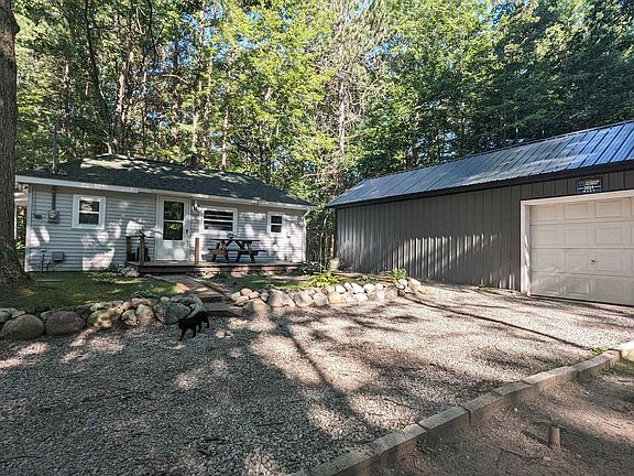 Discover this charming 2 Bedroom, 1 Bath home nestled on a beautifully wooded 1.32-acre property in Indian River. It features a spacious 24x30 detached garage, perfect for ample storage. This well-maintained home is both clean and tidy, boasting numerous upgrades including a new septic system, steel siding on the garage, an Afton stone driveway, enhanced landscaping, and a picturesque walkway encircling the house. Freshly painted with a new sink installed, it's move-in ready for you to turn the key. Schedule your viewing appointment today. The goats will be leaving with the Sellers.