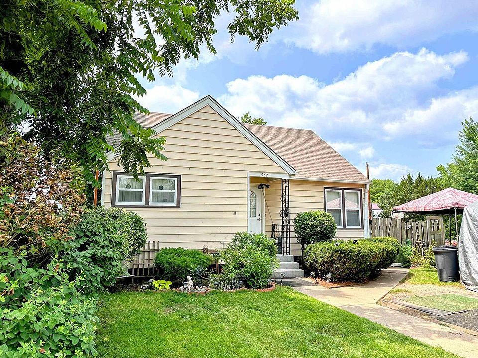 This charming home is 2 bedrooms and 1 1/2 bath with open kitchen, dining area. Beautiful hardwood floors on the main level and lots of storage. The entire upstairs would make a bedroom any teenager would love or office, game room or lots of storage space. Full basement with a 3rd non conforming bedroom plus work area and lots of room. The roof is only about 6 years old and the house has forced air furnace and central air. Nice sized lot makes for a great backyard and shed area. The home is very efficient and comes with all the appliances. With a bedroom on the main level, this home will fit just about anyone wheather you're downsizing or a first time buyer. This well maintained home won't last long, it's a keeper!