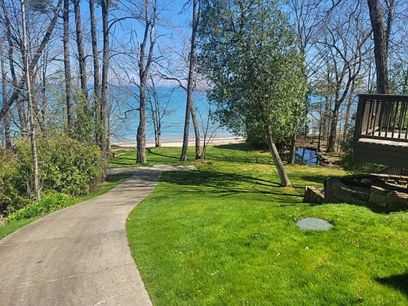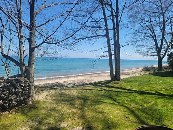 This one of a kind lakefront home has a wide concrete path leading to approximately 101 ft of sandy Lake Huron shoreline. The main floor has an open living area consisting of a living room, kitchen, and dining room. There is a wood stove for those up north nights; along with patio doors opening up to a spacious lakeside deck. Also on the main floor is a three-quarter bath, an office with a lake view, and a conveniently located mud room just off the garage. On the lower level, or finished walkout basement, you will find three bedrooms, a jack-n- jill style bath, a laundry area, and a mechanical room. The second floor of this home features a two bedroom apartment with a kitchen and full bath. The home has a Generac generator, electric base board heat, and forced air AC; so the duct work is in place should you prefer a natural gas forced air heating system. The attached heated garage has plenty of storage and AC. The detached garage is heated and has a bonus room above, providing extra storage or even a future potential living space. The property is located a short drive from Springport Golf Course and downtown Harrisville. Call and schedule your showing today.