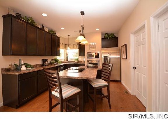 Welcome home! Hardwood flooring leads you in to this beautiful home w/9ft ceilings on the main level. Curl up in front of the gas fireplace in the family room with a bay window. The kitchen & breakfast area are an open concept style - making entertainment ideal in this home. The kitchen offers recessed lighting, upgraded 42" cabinets, cooktop island, stainless steel appliances, double oven, and a walk in pantry. Head upstairs via the open spindled staircase to the second floor where you will find the master bedroom with coffered ceiling, and 3 additional bedrooms. The master bath offers a garden tub with a fixed window above and adult height double vanity. There is plenty of room on the patio for grilling while you enjoy the outdoors. This home offers Dual Zone heating & cooling. The basement is roughed in for an add'l bath & opportunities abound for future living space! Minutes from I-64, shopping, and dining. Stone Briar is just 12 miles from Downtown St. Louis & 8 miles from SAFB.