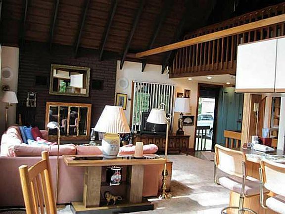 What a view from this 3 level A-frame in wooded seclusion in scenic Hide A Way Hills. Large deck and loft provide panoramic views. Home has been consistently well maintained by owner. Lower level rec room has wet bar and a bathroom for guests. First floor master bdrm, dressing area w/ sink & walk-in closet. Florida room is great for relaxing & viewing nature. Amenities include beach area, 9 hole golf course, basketball court, pool, tennis courts, chapel. 2 1/2 car garage has workshop. Exterior house, deck & garage stained in 2013. New retaining wall to lower level (2013); chimney re-built with wood to match the house & new custom chimney cap. Road fee of $269 paid for 2014. New heat pump (2012).