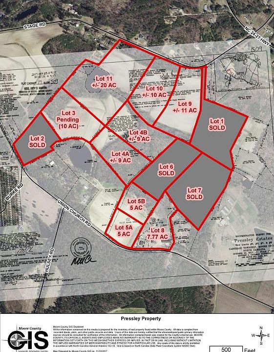 This Beautiful Road Frontage Lot is a must to see. This 5 Acre portion is part of Parcel ID 00005341. No city taxes only county taxes and to be determined by Moore County Department prior to closing. Less than 2 miles from New Century Middle School and Union Pines High School. No HOA and Minimum C&R's. Land/Home Packages are available.