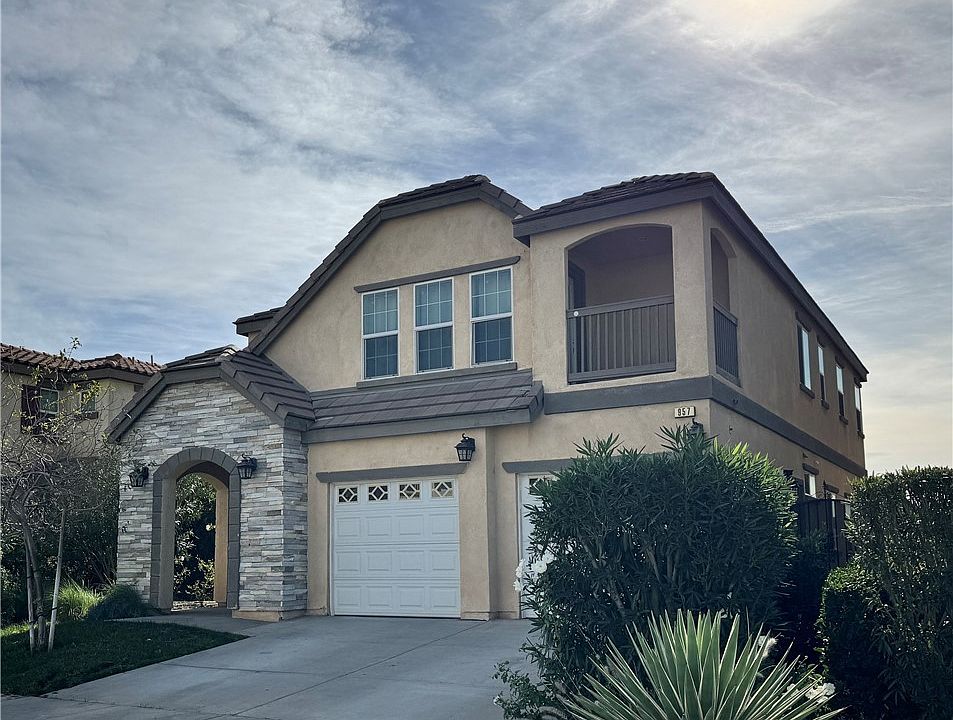 Built in 2017, this beautifully designed two-story home offers 5 bedrooms and 3 bathrooms with modern finishes throughout. The spacious master suite features a double-vanity bath, walk-in closet, wooden linen cabinetry, and a separate shower and soaking tub with city views. The first floor showcases light-colored tile flooring, an elegant iron entry door, a staircase with a wooden handrail and wrought iron balusters, and a beautiful antique gold French country crystal chandelier which can be found throughout the property on both floors. The kitchen features an Island for ample prep space & a walk in pantry for maximum storage space. Upstairs, enjoy wood flooring, an open floor plan, and a bedroom with a private balcony offering mountain views. Have more than one vehicle? No problem, this beautiful property has a two-car garage as the cherry on top. Conveniently located just off the 210 freeway for easy commute and less than a mile from the Renaissance Marketplace for easy access to shopping, dining, and entertainment. Come see it for yourself and imagine the possibilities!