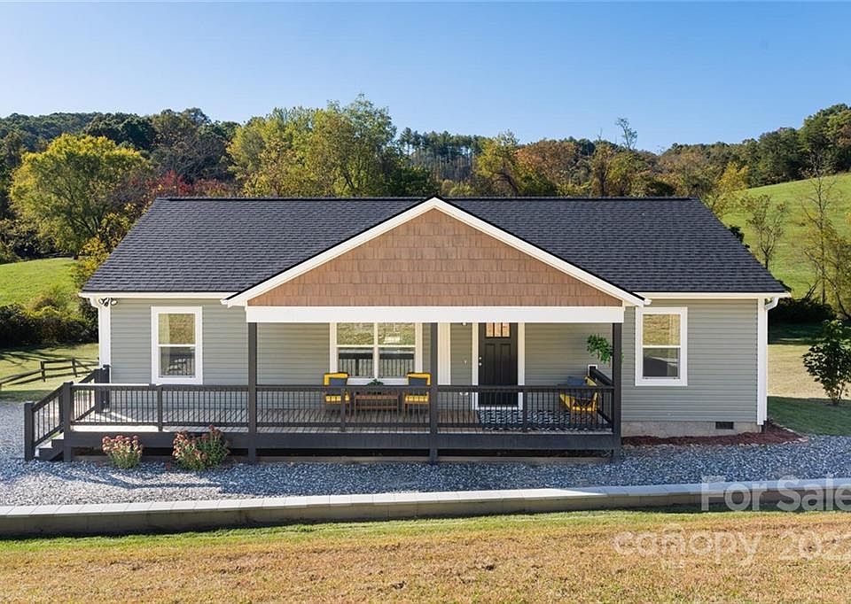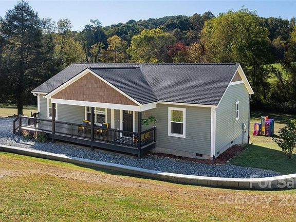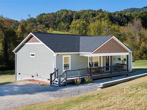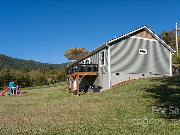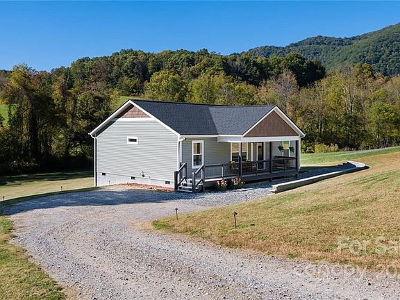 Nestled on a no-thru street, this like-new, one owner, well maintained home is convenient to everything, and an easy commute to Asheville, Waynesville, and surrounding areas. This home features a covered front porch, and a back deck to enjoy the mountain views and star gazing at night. Enjoy the open concept floorplan that opens to the dining area and kitchen, for easy entertaining. The vaulted ceilings and recessed lighting in the living area make the home spacious and bright. The ideal split bedroom layout features the primary bedroom suite with walk-in closet and a dual vanity bathroom. This home features quality floors for easy maintenance and durability, a spacious kitchen with plenty of countertop space, bar seating, and a laundry room located off of the kitchen. You'll love the spacious backyard leading to a flowing stream with access to the water. This low maintenance home is move in ready!