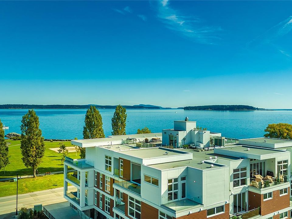 Welcome to Unit 204 at The Rise on Fifth, a stunning south-east-facing corner 2-bedroom home with beautiful ocean and mountain views. This thoughtfully designed residence offers an open-concept layout, allowing natural light to fill the space. The gourmet kitchen features quartz waterfall countertops and a built-in Fisher & Paykel appliance package, perfect for both everyday living and entertaining. Spa-inspired bathrooms include floating vanities, tiled walk-in showers, and a deep soaker tub. Additional amenities include energy-efficient heating and cooling, home automation, underground Klaus parking, storage lockers, bicycle storage, and a pet washing area. Relax on the rooftop patio with panoramic Haro Strait views or take a short stroll to the beach and Sidney’s vibrant downtown. Experience luxury and convenience in this exceptional home.