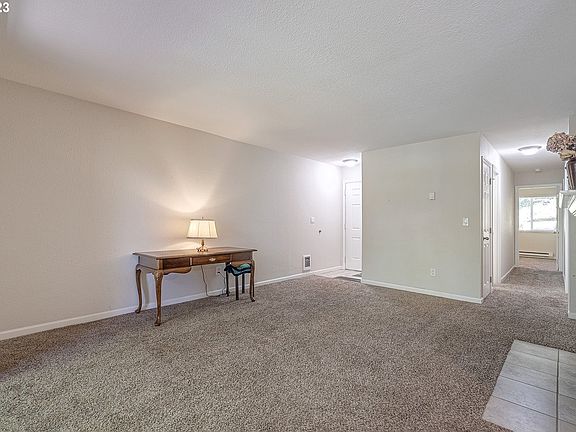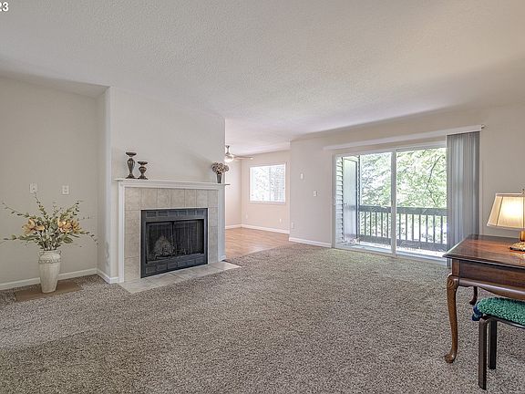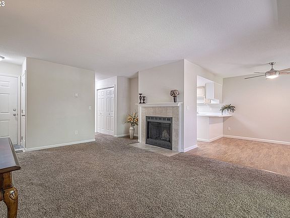 This cozy, ground level condo is move-in ready! This 2 bed 2 full bath features a large living room with a gas fireplace, covered patio with storage, open kitchen layout, double kitchen sinks and plenty of cabinet space. New hot water heater, and all kitchen appliances included. Spacious owner's suite with walk-in shower and wall to wall carpet. With 2 dedicated parking spots, conveniently located near Nike, restaurants, shopping centers and minutes away from grocery stores, parks and more, you don't want to miss this! A prime location!