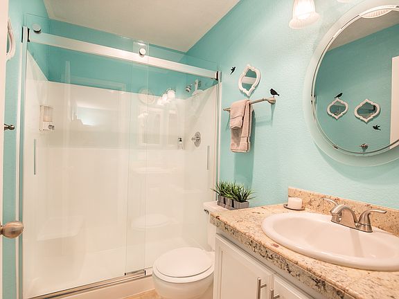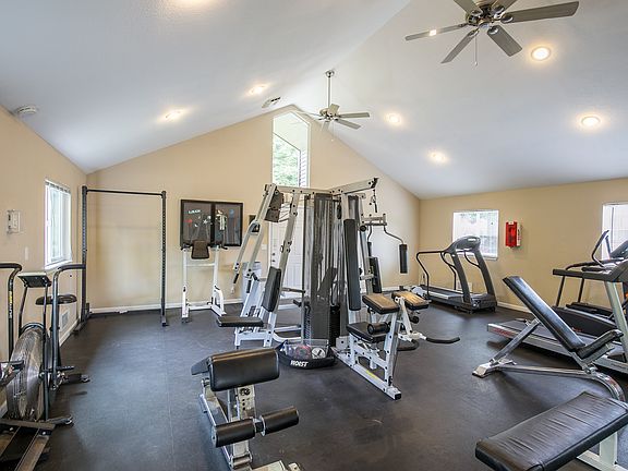 Stainless appliances, vaulted ceiling, wood burning FP and hardwood laminate floors throughout. Granite counters, tile floors and soft close cabinets in kitchen and baths. Master suite is perfection! Walk in Laundry/Utility with full size W/D included. Outdoor patio overlooks gorgeous trees. Pool, workout room, nearby shops, restaurants, parks and low HOA''s.