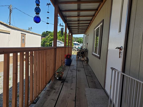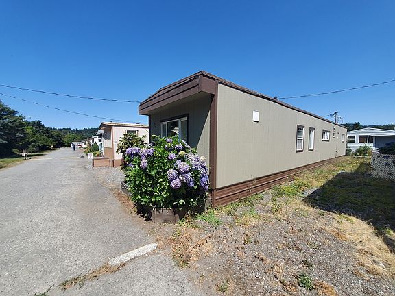 Newly Remodeled 2 bedroom 1 bathroom home in 55+ Mobile Home park. Enjoy the upriver location out of the coastal wind but short drive to town. Covered deck, full size washer & dryer, garden/tool shed are just a few things the home offers. Space rent is $475/month (Buyer to check on future space rent amount) which covers water, garbage, sewer, internet, & use of the Recreation room. Buyers to get approved by park managers & pass background check. Kitchen island, curtains & all hardware are excluded from sale.