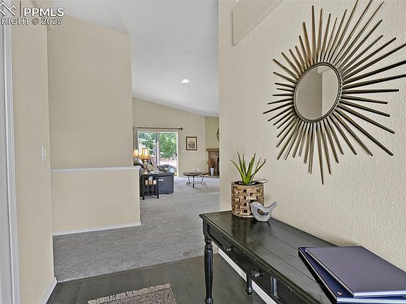 Beautifully Maintained Rancher in Pine Creek – One Owner! Welcome to this impeccably maintained home, featuring the sought after Providence floor plan by Classic Homes. Located in the prestigious Pine Creek community, this ranch-style property offers highly desirable main-level living with stunning Pikes Peak mountain views, directly across from the private Pine Creek HOA park. This spacious home offers 4 bedrooms, 3 full baths, a 2 car garage, and a finished basement. Highlights include; vaulted ceilings, an open-concept layout, abundant natural light, and neutral finishes throughout. The well appointed kitchen features custom concrete countertops, tile backsplash, pantry, built in desk, and a cozy dining area with views of Pikes Peak. The inviting great room includes a gas fireplace, perfect for Colorado evenings. The main-level Owner’s Suite boasts a walk-in closet, dual vanities, heated tile floor, soaking tub, and a separate shower. A second main-level bedroom with French doors is ideal for a home office, with a full hall bath nearby. The finished basement expands your living space with a large rec room, two additional bedrooms, full bath, and laundry area ideal for guests, older children, or multi-generational living. Enjoy the professionally landscaped yard with sprinkler system, perfect for relaxing or entertaining. Conveniently located near golf courses, parks, trails, shopping, dining, and medical facilities, with easy access to major roads and top-rated District 20 schools just a short walk away. Don’t miss this rare opportunity to own a beautifully maintained rancher in one of Colorado Springs’ most desirable neighborhoods—Pine Creek!