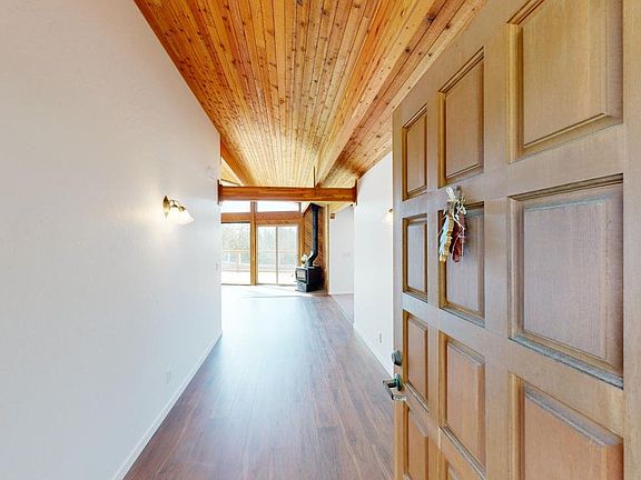 - Features: Beamed Ceilings, Deck, Sliding Doors, Vaulted Ceiling, Wood Stove