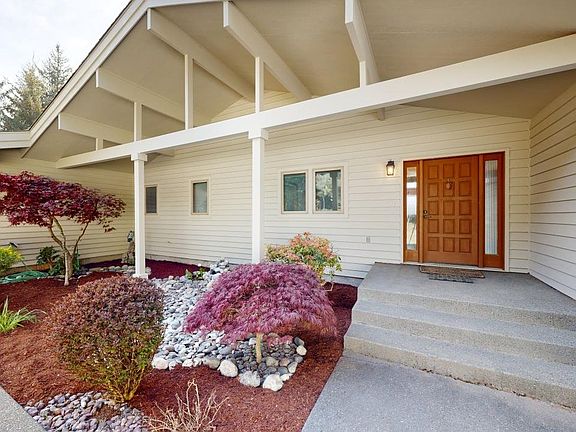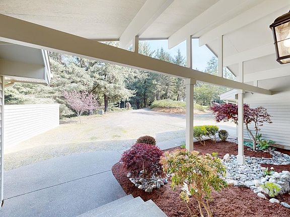 Majestic Oceanview custom Lindal Cedar Home, you are greeted by the soaring cathedral ceilings and an open-concept floor plan. This residence seamlessly blends rustic charm with all of the expected comforts of a modern home, offering a serene retreat and natural beauty. A defining feature is its mesmerizing ocean views. Whether sipping morning coffee or hosting friends, these vistas provide a breathtaking backdrop, leaving a lasting impression. At the heart lies the new country kitchen, a culinary haven where warmth and utility harmonize. Granite countertops, pantry, tile floors, and stainless steel appliances grace the space, inviting culinary creativity while viewing nature's splendor. In the living room, cathedral cedar ceilings and expansive floor-to-ceiling windows let in natural light, ocean, and landscape views. A new certified wood stove adds charm and practicality, casting a cozy glow on chilly evenings. The spacious primary suite boasts tall cedar-lined ceilings, exuding tranquility. Its split floor plan offers privacy and is a perfect retreat after a long day. This is a two-bedroom, two-bathroom home with an office/den that could be used as a third bedroom. An open-concept floor plan facilitates effortless flow between living spaces.The oversized, deep, 27Wx36.5D garage caters to hobbyists and DIY enthusiasts. Nestled at the end of a gentle gravel road, this home offers privacy and seclusion just minutes from downtown Brookings. With several local beaches nearby, it's a fabulous location. New exterior and interior paint. This home has been recently upgraded and is move-in ready! Bring the Boat and the RV, as you have plenty of room to park on this private 5-plus-acre parcel. It is above the fog line, and plenty of space exists for a shop, garden, and greenhouse. Request a copy of the recent appraisal, priced well below the appraised value. Single-level home. Ask to see the 3D tour!