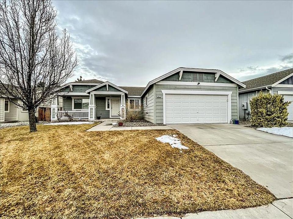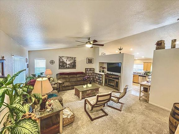 Located near shopping, schools, businesses, parks, walking trails, healthcare and close to freeway access. There are wide hallways and two same size bedrooms. The master has a walk-in closet and a garden tub next to the shower stall. The laudry room is currently used as an office space. Kitchen STOVE/OVEN RANGE DOES NOT STAY! Brand new energy efficient sliding glass door. Back yard has a patio cover frame and seller will leave patio cover/awning. There is also a fire pit perfect for night time with family or entertaining. Off to the side there is a shed for storage. Refrigerator in kitchen, washer and dryer are included (stackable, located in the garage) with no value and no warranty.