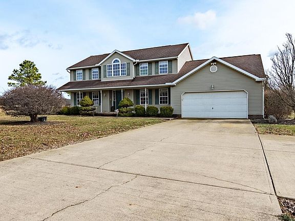 Spacious Home located on a beautiful 1.5 acre lot in the popular Zane Trace School district. The grand two story entry way presents an open stair case leading to the picturesque window with views from the second floor balcony. There you will find 4 large bedrooms. Upon entering the home you will discover the huge open kitchen with amazing views of the beautiful country setting. This expansive home has a professionally finished lower level with a two sided gas fireplace. First floor laundry and office space. Updated furnace and hot water tank. The maintenance free concrete drive provides an additional parking area. Enjoy a quiet evening gazing at the stars listening to crickets while kicked back on the front porch in this desirable country setting.