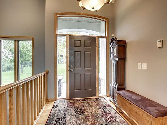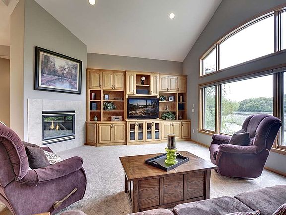 Breathtaking views from EVERY window! Picturesque custom home surrounded by beautiful landscaping and Monet-like pond views is just the start of what this almost 3 acre property has to offer. Master suite has adjacent nursery/sitting room & 2 sided fireplace. Cambria countertop, backsplash & stainless appliances. Ideal lower level w/wet bar & home theatre. In-floor heat throughout. Insulated walls & gypcrete flooring aid sound and temp control. Heated garage plus 10 x 12 shed. New roof 2015., Directions From Southbound on I-35, exit onto Kenrick Ave (which turns into Pillsbury Ave), take first exit in round-about to CR 29. Right onto Xerxes, then left onto Livery Lane. Turn right onto Norway Hills Trail then left onto 219th. First home on the left side of 219th St E.