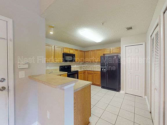 This second-floor condo offers 3 bedrooms, 2 bathrooms, and 1,157 sq. ft. of comfortable living space. The kitchen features upgraded black appliances, stylish cabinetry, and tile flooring. The primary bedroom includes a spacious walk-in closet, and a washer and dryer are provided for your convenience.