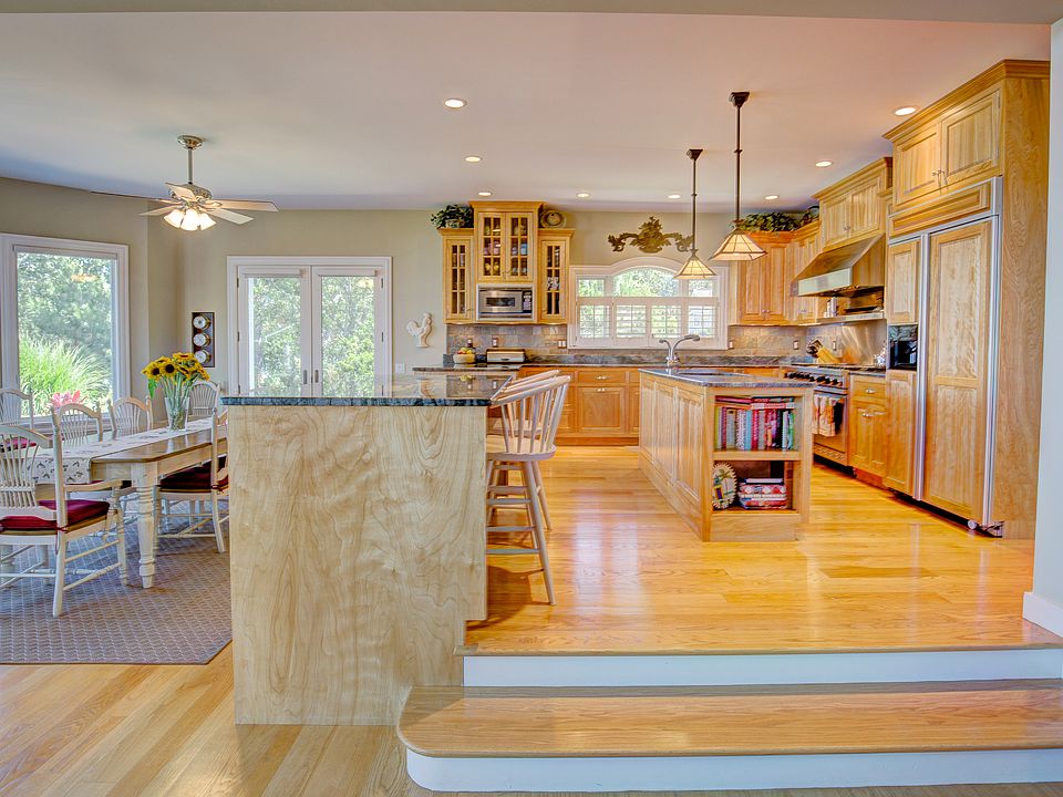 Stunning Shingle-Style Waterfront Home With Sweeping Bay Views.Open Plan Living Space Designed With Location In Mind With 2-Story Entry And River Stone Fireplace. First And Second Floor Master Suites With Gas Fireplaces, Balconies, 3/4 Additional Bedrooms And Lovely Professional Landscaping. See Attached List Of Features For Full Description..