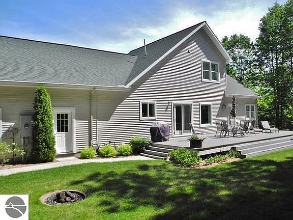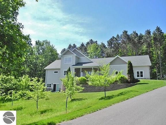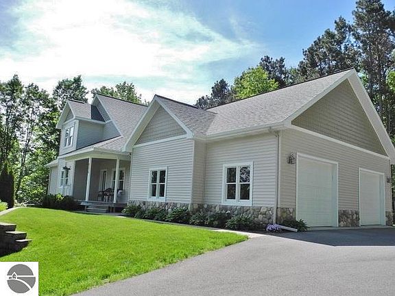 This beautiful energy efficient newer home offers over 3500 sq ft of finished living area, a great room with a gas fireplace and hardwood flooring, large kitchen with quality maple cabinetry and appliances, main level master bedroom suite and office, 4 bedrooms, a partially finished walkout lower level, a wonderful covered front porch and large rear yard deck ideal for entertaining guests and family! All in a very private partially wooded setting on a quiet paved private roadway within biking and walking distance to the charming Village of Suttons Bay!