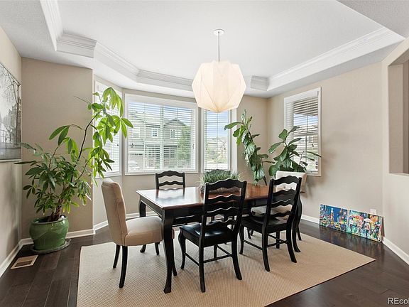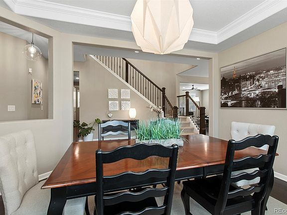 IMMACULATE HOME WITH AN EXTENSIVE UPGRADES THROUGHOUT THIS BEAUTIFUL 2 STORY HOME ON A CORNER LOT IS AVAILABLE TO FULFILL YOUR DREAM. THIS HOME IS A RARE GEM LOCATED AT THE MERIDIAN INTERNATIONAL BUSINESS CENTER / PEORIA PLACE COMMUNITY NEAR LINCOLN AND I-25. LET'S ENTER THIS BEAUTIFUL HOME WITH THE EXPECTATION OF STYLISH AND COMFORT. UPON ENTRY, YOU WILL NOTICE THE MASSIVE ENGINEERED HARDWOOD FLOORING THROUGHOUT THE MAIN LEVEL WHICH GUIDES TO A HALLWAY THAT LEADS TO THE GARAGE, A BATHROOM AND A BEDROOM WHICH IS CURRENTLY OCCUPIED AS ART-DECO STYLISH OFFICE. ON THE RIGHT OF THE ENTRY, YOU WILL FIND A SPACIOUS FORMAL DINING ROOM WITH BAY WINDOWS. FURTHER INTO THE HOUSE, A GOURMET KITCHEN WITH FULL OF ELEGANTLY DESIGNED LIGHTS WILL LIGHT UP THE CABINETS AND GRANITE COUNTERTOPS WHICH WILL MOTIVATE YOU TO START PREPARING FOR SOME FINE DINING. FROM THE VIEW OF THE KITCHEN COUNTER, YOU WILL SEE THE COZY OPEN FLOOR PLAN OF THE FAMILY ROOM WITH FIREPLACE. AS YOU MOVE TOWARDS THE UPPER LEVEL, ALONG THE STAIRS WITH UPGRADED RAILS, YOU WILL APPROACH AN OPEN GREAT ROOM WITH EXTENSIVE RECESSIVE LIGHTINGS. AT THIS POINT, YOUR WILL WILL START TURNING WITH SOME CREATIVE IDEAS TO UTILIZE THE SPACE. HEADING INTO THE SPACIOUS AND BRIGHT MASTER BEDROOM, YOU WILL NOTICE THE GLOWING MASTER BATHROOM WITH HIS AND HER WALK-IN CLOSET. BACK TOWARDS THE STAIRWAY, A HALLWAY WILL LEAD YOU TO TWO OTHER BEDROOMS, A BATHROOM, AND A GUEST ROOM WITH WALK-IN CLOSET AND A PRIVATE BATHROOM. NOW, LET'S HEAD TO THE BACK OF THE HOUSE, YOU WILL SEE A PROFESSIONALLY LANDSCAPED DESIGNED WITH PATIO WHICH WILL WELCOME ALL YOUR FRIENDS AND FAMILY FOR THAT GATHERING BY THE BUILT IN BBQ GRILL (GRILL INCLUDED). IF THIS IS NOT ENOUGH, THIS BEAUTIFUL HOME ALSO OFFERS THE RING SECURITY SYSTEM WITH MOTION SENSORS AND CAMERAS, TESLA CHARGING STATION, MONOGRAM REFRIGERATOR, WASHER AND DRYER, SMART THERMOSTAT FOR 2 A/C UNITS AND 2 FURNACES. YOU BETTER HURRY... THIS WILL NOT LAST.