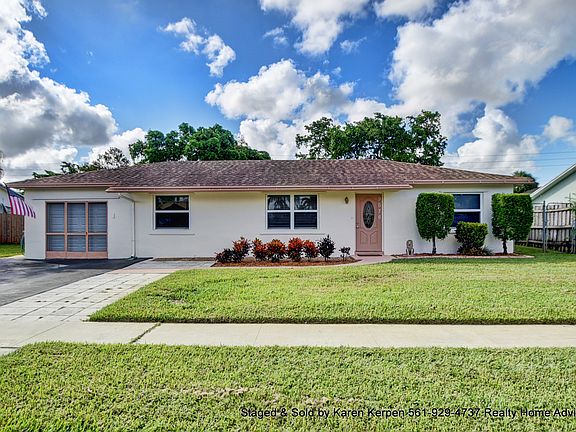 Meticulously maintained by the original owners, this single family home is spacious, open & bright w/5 Bedrooms plus huge family room/2 bathrooms/1 car garage/3 car wide driveway. Featuring impact windows/doors throughout/updated bathrooms/engineered wood flooring throughout. Updated kitchen w/new stainless steel appliances, quartz counter tops/custom stone back-splash & wood cabinets w/customized pull out & deep draws. 5th bedroom has separate side entrance & could be perfect mother in law suite. Screened in & open patio. Large fenced in backyard. Newer roof/freshly painted inside & out/sprinklers from well. Southwind Lakes has low HOA fee $57/month includes community pool, tennis, basketball,tot lot+ more! Great schools! Pet friendly community! All ages are ok! Fha/VA ok! Sold and staged by Karen Kerpen/Realty Home Advisors 561-929-4737