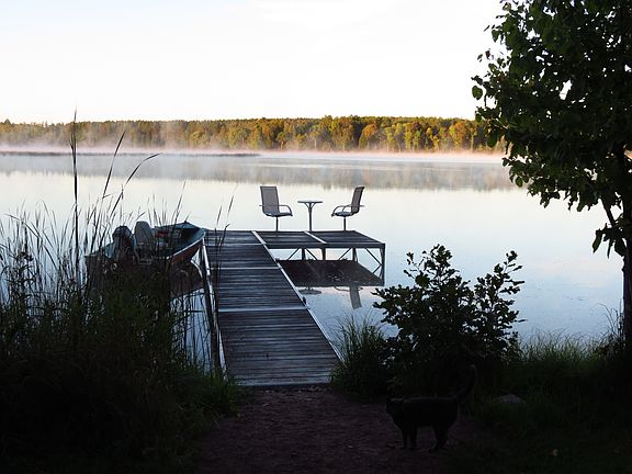 Spacious home & spectacular view! 3 bedroom, 2 full bath bi-level split home on 2 lots with 250' of shoreline! Private setting with opposite shore entirely state land. Open floor plan, large center island in kitchen, dining room, and living room with peaceful view of lake. Hardwood floors, gas fireplace and two family areas. Lower level has 2 bedrooms, huge family room with gas fireplace. Double attached garage with entrance to both levels. Extra storage garage for toys! Gentle slope to shoreline with level expanse for lakeside fun. Great fishing lake! As of January 15th we will be re-listing this home with a realtor, beat the 6% increase and get a hold of us TODAY!! Hurry, interest rates are going up!