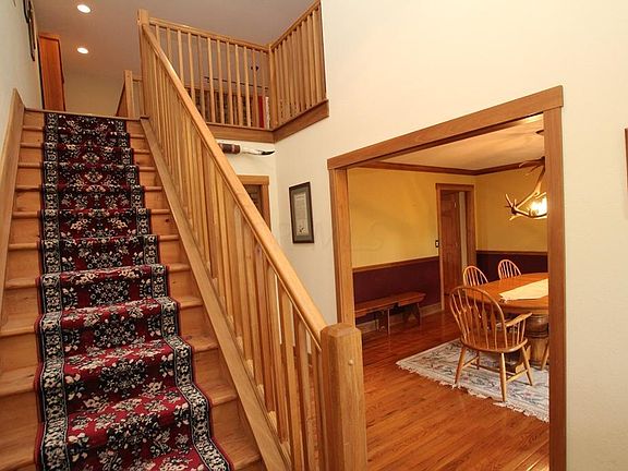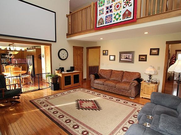 This lovely 4 bedroom 2.5 bath home sits on almost 11 acres . Great room with cathedral ceilings and stone fireplace, kitchen w/ custom oak cabinets, granite counter tops & stainless steel appliances. First Floor master & laundry,finished basement,6 panel wood doors ,hardwood floors, Back deck with beautiful views of the State Property , Hot tub to stay. Forced air propane furnace plus a wood Stove furnace. concrete driveway, oversized 2 car garage built to fit a F250 super duty 4 door truck. 40x80 Barn with concrete, 100 amp electric & a 14' garage door. 15 x 80 horse barn with horse stalls, hayloft & water hydrant , heated shop. back pasture in hay .Additional Parcel # 11000400000610