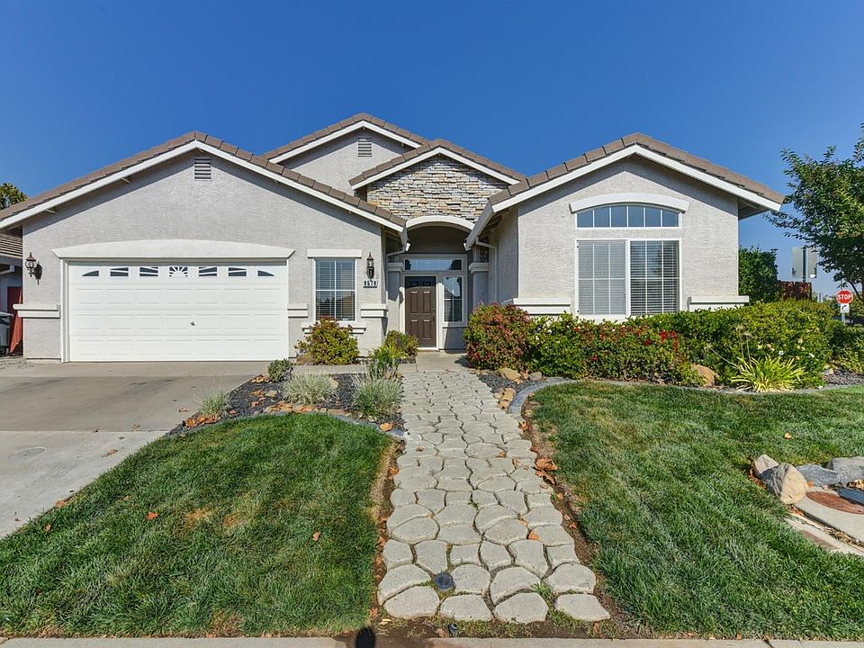Lovely single story home on a spacious lot in one of Elk Grove's premier neighborhoods of Tributary Pointe! The home has been meticulously maintained and thoughtfully updated and features a great floor plan with a large master suite, remodeled kitchen, and a great backyard oasis. The wonderful amenities include a newer HVAC (3 years old), water and pet proof wood-like vinyl flooring throughout, granite counters, stainless steel appliances, and neutral colors throughout. The backyard has a covered and uncovered patios and gorgeous landscaping. Located close to shopping, parks, and high-rated Pleasant Grove High, Albiani Middle, and Edna Batey Elementary Schools. Don't miss this great home!