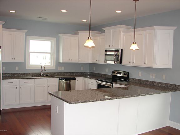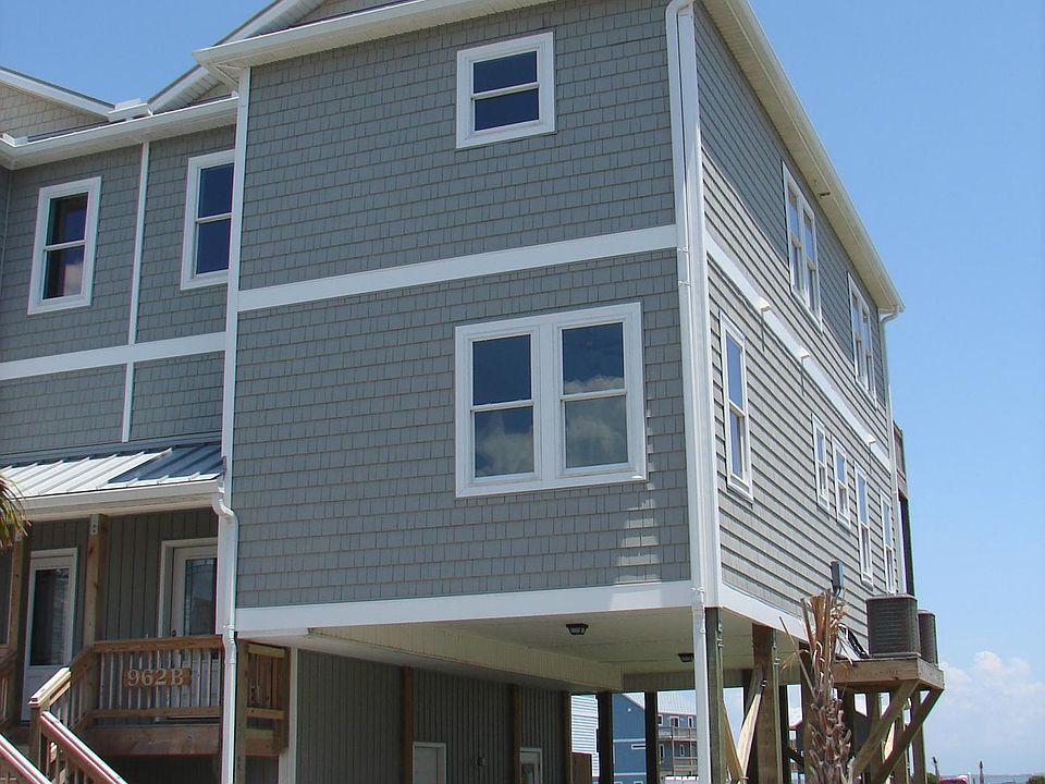 Beautiful new waterfront home in Queens Grant. Come enjoy island relaxation in a boating community. This 3 bedroom 2.5 bath with an elevator is all you will need to enjoy beautiful sunrises over the Atlantic Ocean and sunsets over the Topsail Sound. The kitchen offers custom cabinetry, with granit counter tops, and lots of storage. It opens up to the large family room with vaulted ceilings and hardwood floors. You will enjoy the walls of windows with water views. The outside decks provide views of the ocean, canal, and sound. Amenities are clubhouse, boat docks, beach access, boat ramp, picnic area, basketball court, and swimming pool. These upgrades are now standard in all the Town Houses. 6' sliders vs. 5; sliders Discovery Cedar Siding Mastic, 5 point lock system thicker mill, vinyl siding. Cortec flooring LVT waterproof on all 6 sides. Trim upgrades to flat stock. Larger ground floor area. Storage units on all buildings. Custom cabinets, all solid wood construction with soft close doors and drawers. Upstairs bathroom enlarged. New kitchen design to add Pantry and Broom closet. New master suite layout. Granite countertops on Kitchen and vanities. Tile show in Master bath Elongated comfort height toilets. Outside faucets on decks. Outside GFCI outlets on decks. Oak stair treads. Custom CAB elevator hydraulic. Side by side full sized Washer/Dryer. .032 Aluminum roofing.