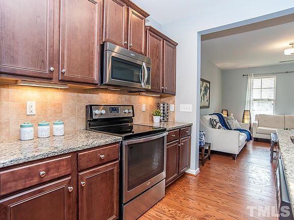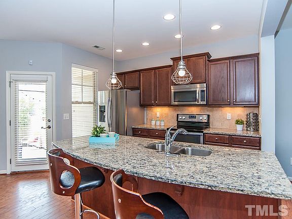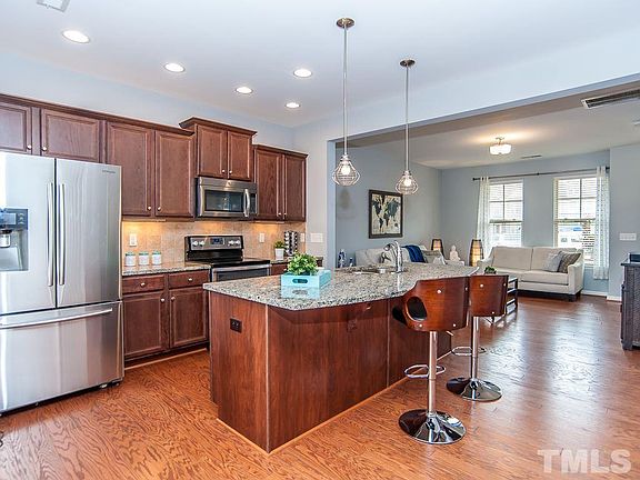 Enchanting, welcoming townhome with 3beds/3,5baths in desirable Apex location! NEW Hardwood Bamboo Floor on the entire second & third floors & inter. Painting; New Light fixtures in dining, kitchen, family rm. Kitchen w/Custom built cabinets, under cabinet lighting, granite countertops, big island w/pendant lighting, walk in pantry, SS appliances; hardwood floor. Master suite w/trey ceiling, walk in closet; spacious master shower w/custom upgraded surrounding mosaic tile. Very cozy covered porch & patio!!