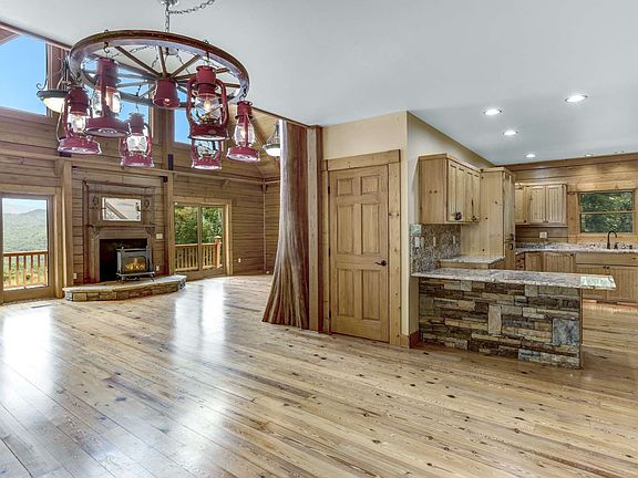 PRIVATE BIG CABIN WITH BIG VIEWS IN THE NORTH CAROLINA MOUNTAINS!! Located on over 2.5 acres, this spacious cabin offers privacy, an elevator, 3 bedrooms, 3.5 bathrooms, a great room w/ soaring cathedral ceiling, beautiful blend of wood, stone & drywall interior, granite counters & pantry in kitchen, solid wood doors, master on main, master bath w/ tile & stone walk-in shower, half bath, covered screened-in side porch & large open air deck, mountain laurel stairwell to upper level w/ large loft sitting area, 2 bedrooms & bathroom, lower level w/ living room w/ wood burning stove, bathroom, laundry room, concrete patio, an oversized 2 car garage & a large concrete parking driveway. If you are looking for big views, privacy & room to spread out this is a must see cabin.