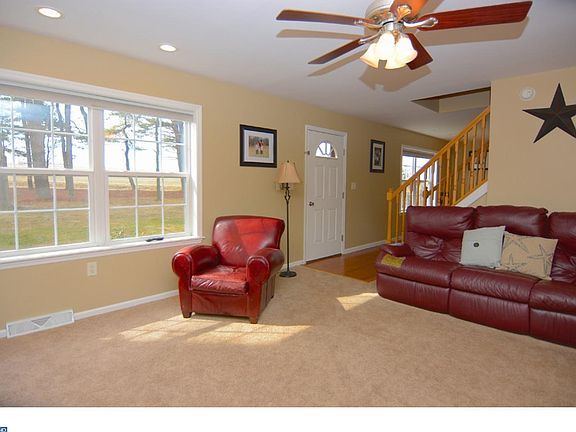 This stately 2 story home nestled among pine trees on a corner lot has great amenities. Enter into a foyer with open stairs and a large living room and dining room to either side. The large eat in kitchen is the heart of the home with fabulous cabinetry, island and range hood and trim that steals the show. The kitchen is open to a dining area, but there is a formal dining room also. The complete first floor is hardwood flooring. Laundry and half bath are off the kitchen. Sliders open from the kitchen to a deck and great big back yard that is shaded and fenced in for very active dogs. Play set and large shed with electric are included with the property. The upper level has 3 nice sized bedrooms and and office that is currently used as a bedroom. This home was built as a manufactured home with superior basement walls and sturdy construction. Large macadam driveway and parking area completes this home.