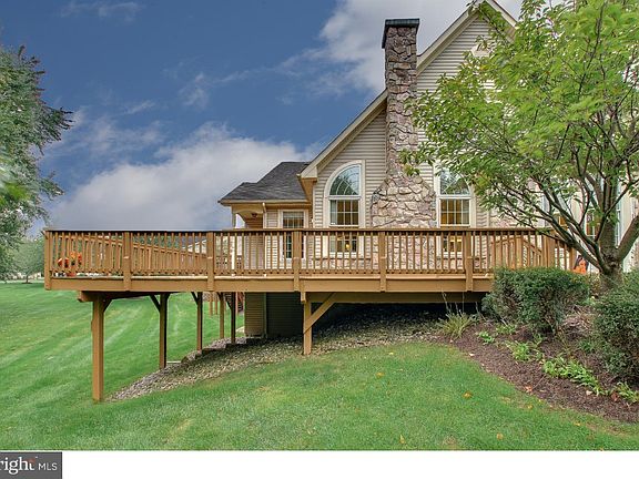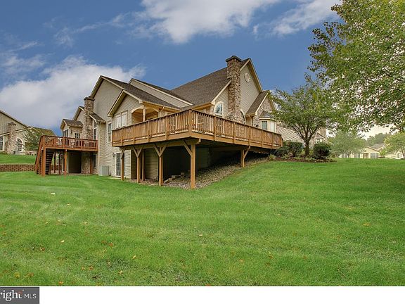 BEST LOCATION! FULL WALKOUT BASEMENT! MASSIVE WRAP-AROUND DECK! MOVE-IN-READY! Nature Abounds this Custom Crafted Rosewell Model Quad with a Superior Location! Enjoy the change of the seasons from your entertainment-sized wrap-around deck. The wooded park-like setting is just steps away from your front door allowing for easy bird watching year 'round; countless robins in the spring, summer blue jays, owls in fall and beautiful cardinals during the winter months. The foyer opens to a custom versatile, open floor plan with vaulted ceilings, sun filled great-room with gas fireplace, Mount Vernon mantel, surrounded by walls of windows and 2 quarter round window toppers The bright dining room accommodates a full sized table, hutch and server. Plenty of natural light from the kitchen's sky light. Completing the kitchen features are 42" maple cabinets and spacious pantry. There are stunning views from each room. of the home. The master bedroom suite includes a walk-in bay window, vaulted ceiling, walk-in-closet and separate wall closet, a double bowl vanity, seated shower and additional linen closet. The finished loft/3rd bedroom is the perfect space for your overnight guests retreat including a bedroom, sitting area and full bath.The enormous walk out basement allows space for home hobbyist, tons of storage and a fun place for the grandkids to play. The Flowers Mill club houses includes indoor and out door pools, gym, library, ball grand ball room, craft and card rooms. Now is your time is now to enjoy all the frills of living in Bucks County's finest Active Adult Community. Flowers Mill is conveniently located near US1 and Interstate 95. The trains to New York or Philadelphia are minutes away. find quaint village dining and wonderful shopping near by along with outstanding hospitals.