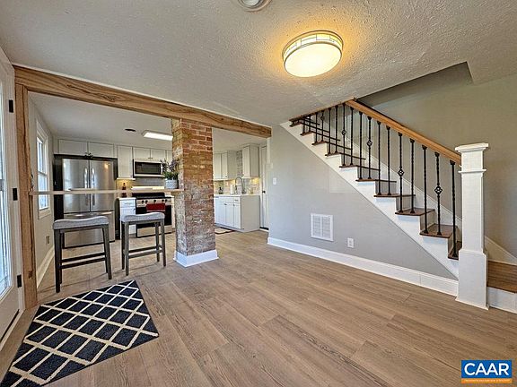 Beautifully remodeled 4 Bedroom 1 Bath home with many premium upgrades – a private oasis within walking distance to Downtown Staunton! Highlights include a new custom Kitchen with Shaker cabinets and a built-in table/bar (hand crafted from locally sourced red oak), all new stainless appliances, and solid surface countertops. Refinished Heart Pine Flooring on the 2nd level adds elegance to this remarkable home. The stairwell to the second level includes a custom handmade newel post and wrought iron railing. The bathroom is brand new and includes custom tile, a new vanity and new fixtures. Other notable features include: all new lighting, new spray foam insulation in basement, a new Heat Pump, energy efficient windows, a welcoming covered front porch, sliding door access to a large rear deck, a wonderful yard with mature landscaping, and much more. Don’t miss the opportunity to purchase this adorable home with premium finishes at an affordable price.