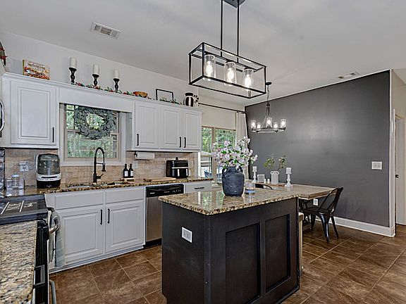 Island barBackyard firepitMetal roofStainless steel appliancesSeparate formal dining roomCozy dining areaPrivate acre lot