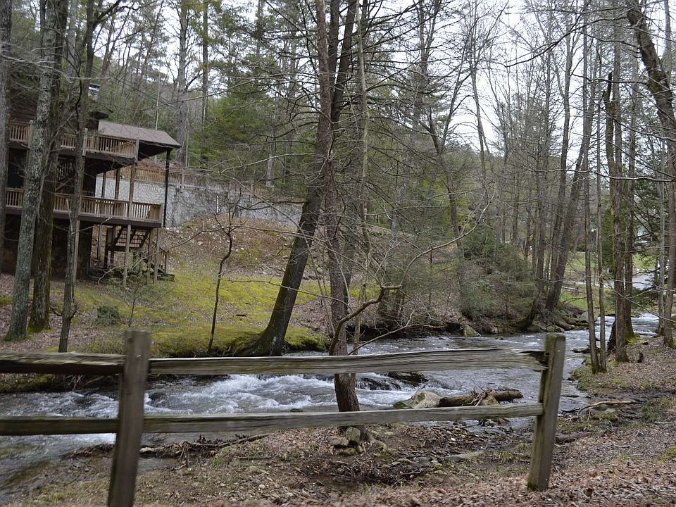 Great get a way cabin backs up to green space with seasonal mountain views. Enjoy the peace and tranquility of the woods. Gated community with pool, tennis courts, play ground and several ponds with picnic tables. great creek side park to enjoy the rushing Turniptown Creek.