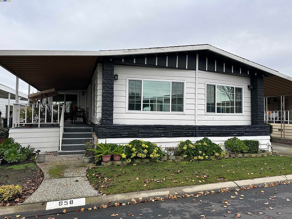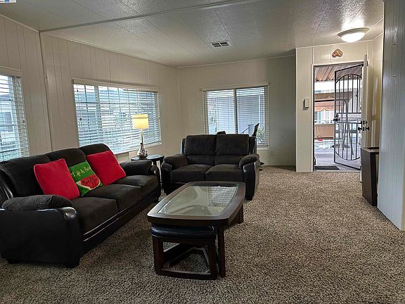 Lots of space in this 2 bedroom, 2 bath triple wide. Located in the New England Village, a senior community. This well cared for home features dual pane windows, neutral interior paint, central heat and A/C, a living room w/ lots of natural light, dining area w/ built in hutch. Kitchen with free standing gas stove/oven, refrigerator, & breakfast bar. Huge family room w/ wet bar & built in desk area. Indoor laundry with washer & dryer. Guest bedroom w/ access to guest bath that features a large shower. Generous size primary bedroom with walk in closet. Primary bath with double sinks, stall shower, & separate soaking tub. The exterior has a large covered porch. long carport area, & low maintenance yards. The Clubhouse has for your enjoyment a pool, spa, pool tables, library, & much more.