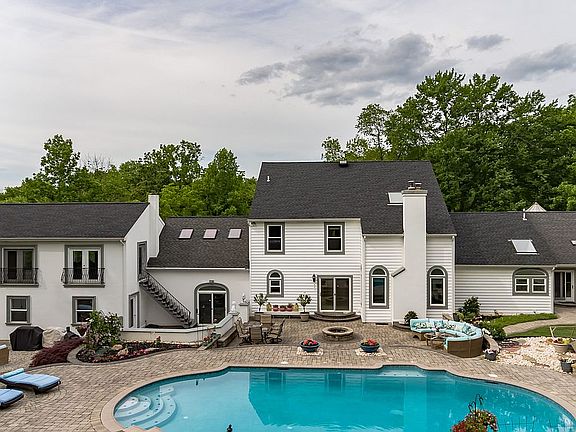 A beautiful, totally unique and one-of-a-kind extraordinary property with a contemporary flair is situated on a private park-like 2.69 acre lot, just minutes from the heart of the Historic Doylestown downtown! The spacious floorplan is perfect for living, working from home, and serious entertaining, and features 7,847 meticulously maintained square feet.which includes 5383 SF of above ground living space,1584 SF of finished basement and 880 SF of fully insulated flex space above garage. Garage is also an additional 880 SF. This custom house features 5 bedrooms, 3/2 baths, first-floor master suite, spacious gourmet kitchen, butler’s kitchen, formal dining room, entertainment rooms, home gym, and much more. This home architecture plus a tasteful combination of stone, stucco and siding, make up a fabulous curb appeal. EP Henry patios wrap around the whole house and contribute to a dramatic front entrance From the elegant double door entry, you are greeted with the stunning two-story foyer with heated Italian porcelain floors throughout the first floor. Full of natural light, the Living room with the cathedral ceiling and a skylight, floor to ceiling stone fireplace with woodburning stove makes you feel immediately at home. The master suite is the first-floor wing and is a luxury and trendy two-room, two-bathroom his and hers grand space. It features dramatic high ceilings, hardwood flooring, two amazing bathrooms and an unimaginable amount of closet space. Enter your luxury private outdoor sanctuary through any of three sliding doors in the back, and rejoice in the gorgeous professionally designed backyard with the fabulous hardscape and lots of flowers. Enjoy a morning cup of coffee on the master suite patio, celebrate life at the dinner table next to the fire pit on the main patio, get a suntan on the patio around the heated, recently refinished quartz pool & spa, or get hydromassage in the hot tub on the lower patio. This backyard is so stunning - you do not want to leave! The one-of-the-kind huge reception room has a separate entrance and sits on the top of the oversized 3 car garage. Staircases are also custom designed. One staircase leads to the enormous basement with party/bar/ billiard room, half bath, home gym with sauna, and flex/storage/laundry room. Another one leads to the second floor with 3 spacious bedrooms and a full bath. There is also a large organic garden with many planted vegetables! This custom-built home is conveniently located just a couple of minutes from downtown Doylestown, is close to Peddler's Village and New Hope. Award-winning Central Bucks School District. Surprisingly low property taxes. Enjoy everything this home has to offer both inside and out. Please visit http://DoylestownHomeForSale.com for more details
