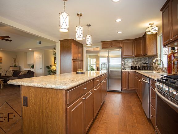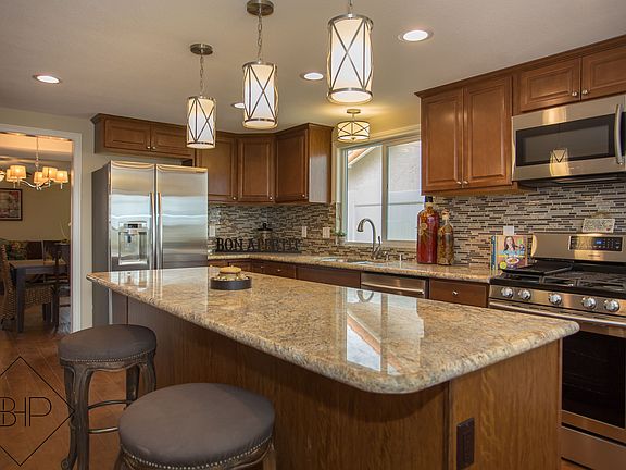 Spectacular views! Sought after street in East Ridge. Looking for a house situated in a quiet, gated community? This is HOME! Every surface has been transformed with modern amenities. Kitchen boasts new cabinets, granite, SS Samsung appliances with gigantic 8 ft island. Adjoining dining room has additional cabinets with wine fridge opening up to living room. Want to relax for the night? Enjoy cozy fireplace in Family Room with vaulted ceilings or sit outside under covered patio & enjoy gorgeous sunsets. Oversized garage with workshop plus RV parking availble.