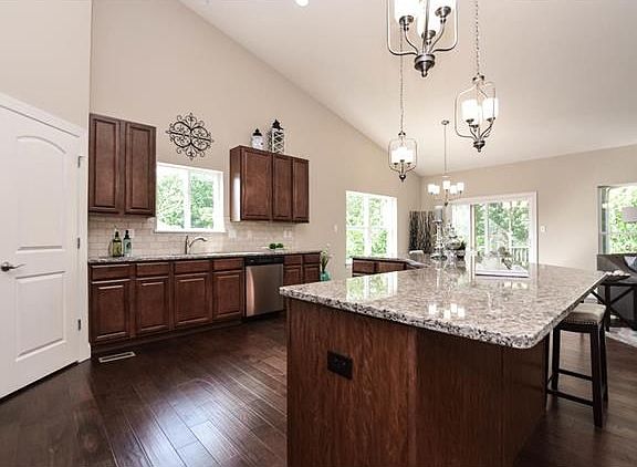AUTUMN MOVE IN READY SALE!!! LUXURY DETACHED VILLA boasts approx 1600+ SF of open living space, 2 spacious BR, 2 full baths, 2 car garage. This floor plan has been customized w/these upgrades: 9 ceilings, vaults, bay window, 42 cabinet upgrade, gas fireplace, upgraded flooring, 5 /4 base, rough in in LL, custom paint, can lights, 12x12 screened in porch off dining room, walk out 810 pour, plumbing upgrades. You will love the OPEN LIVING/ENTERTAINING area, gourmet kitchen and huge Master Bedroom Suite with large walk in closet & separate/tub & shower, adult height sinks and bay window. Kemp offers the following STANDARD features: granite in the kit, furniture quality cabinets, upgraded appliances, Moen fixtures,stylish 2-panel doors,1st floor laundry, hardwood floor entry, fully sodded yard, irrigation system, 30 year roof shingles, brick & stone front & much more! Low monthly fees cover all lawn care & landscaping, snow removal, trash. Amenities incl pool, tennis & clubhouse.