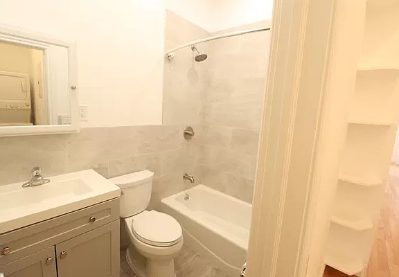 This light filled 2-bedroom apartment is located in the heart of Crown Heights. 10 and foot ceilings in each area of the apartment. Oak floors throughout, quartz kitchen counter tops, stainless steel appliances including dishwasher and stackable washer dryer system compliment this comfortable and quiet space. The apartment is on the parlor floor. The building is located in a cul de sac with an outdoor park containing seating and a small playground. It is designated as a landmark building in the Crown Heights North Historic District. It is a 10 minute walk to the C train Kingston/Throop station and 10 minute walk to the 2, 3, 4 and 5 trains Kingston/Eastern Parkway station. Please contact me for a tour of the apartment and community.