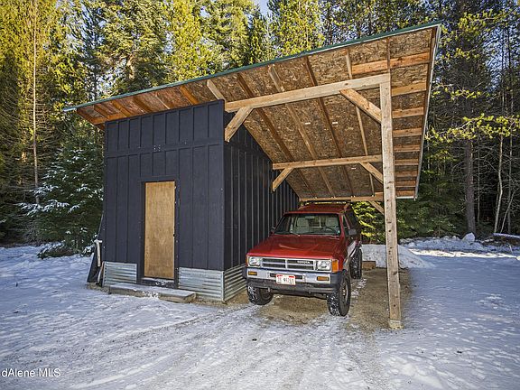Off grid living in North Idaho! Very comfortable 1 Bedroom 1 Bathroom home on 6.8 acres, with an almost finished studio. Small greenhouse with fenced in garden, south facing topography that is mostly flat, two carports and a storage shed. Power is solar with generator backup for the winter months (generator stays with the property). Plenty of space to build a larger home, too! Grid power is nearby. SHOWING BY APPOINTMENT ONLY. NO DRIVEBYS, PLEASE.
