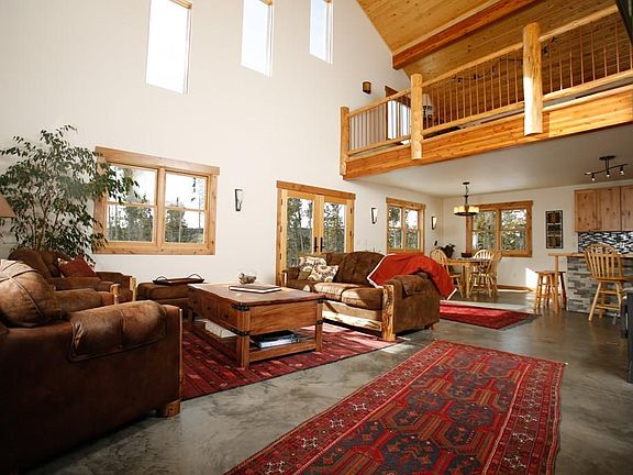 Expansive builder's home on 3 private acres BORDERING NATIONAL FOREST! Nestled in the trees with captivating views to Pikes Peak. Stylish concrete floors, vaulted ceiling, stainless appliances, granite counters & large kitchen island are just a few highlights. Huge master retreat has private balcony, steam shower & jetted tub. Mother-in-law suite with separate entrance, full wet bar, tiled bath & spacious family room. Watch for moose & deer or hike to Sacramento Creek... less than 1/4 mile away!