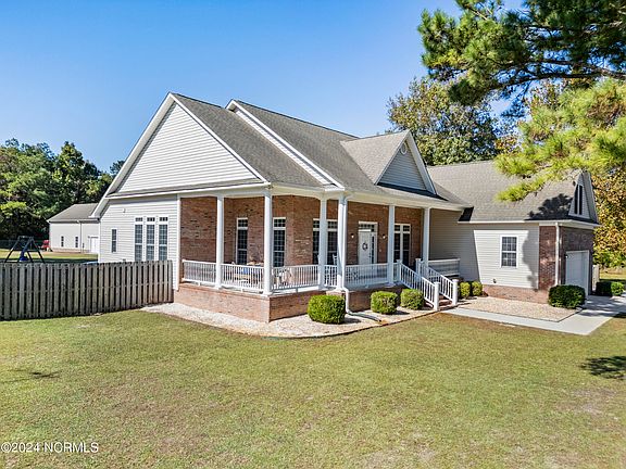 Welcome to the highly sought-after community of Washington Acres in beautiful Hampstead, NC! This charming 3-bedroom home features an office space and a bonus room, making it perfect for both work and play. With elegant hardwood flooring, soaring ceilings, and tall windows that let in plenty of natural light, the interior is as inviting as it is functional. Cozy up on cooler nights by the gas fireplace, whether you're diving into a good book, enjoying your favorite show, or chatting with the chef in the open kitchen. Step outside to relax on the expansive rocking chair front porch or retreat to the screened-in back porch that overlooks your sprawling 1+ acre property. Green thumbs will appreciate the garden space for flowers and veggies, while hobbyists will love the generous 1059 sq. ft. RV garage/shop for all their projects. Conveniently located just minutes from Wilmington, you'll enjoy a relaxed country vibe while still being close to the coast. With Surf City Beach, Wrightsville Beach, and historic downtown Wilmington all within a 30-minute drive, the options for relaxation, entertainment, and adventure are endless. Plus, nearby water access makes it easy to enjoy outdoor activities. This home truly offers the best of both worlds!