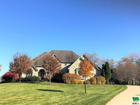 Outstanding 6 bed 6 bath 1 1/2 story home that backs up to the 1500 acre Adams Nature Preserve. Open floor plan with high volume ceilings. Main floor master plus huge kitchen with hearth room. Each bedroom upstairs is enhanced by a full bath and walk in closet. Second floor features 3 bedrooms plus bonus family room / den. Walkout lower level family room with wet bar and patio door to the in ground pool area with newer electric cover & liner. The fenced pool area also features a great Cabana / change room with storage for pool toys. Plenty of storage 2nd floor and basement plus huge heated sideload 3 stall garage. Zoned heating / cooling for added comfort. AHS Warranty included. Located in Wynstone Siouxland's only gated community.
