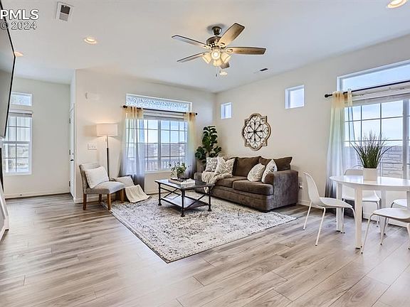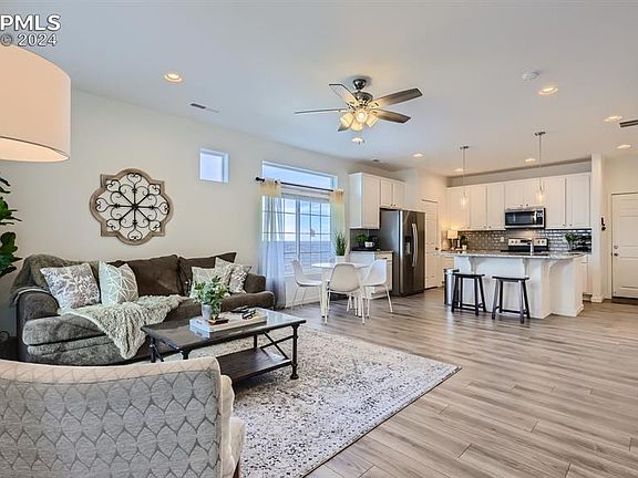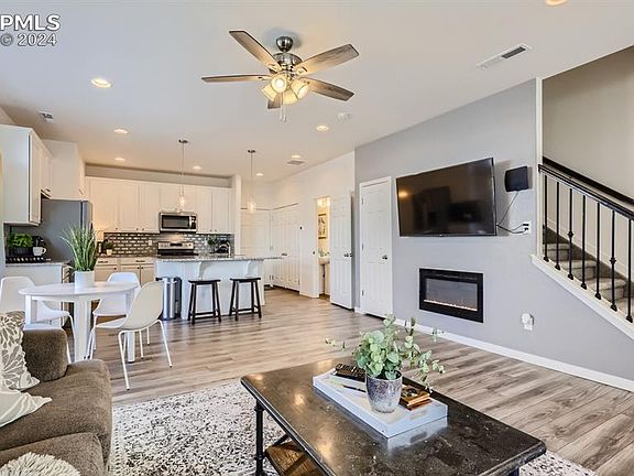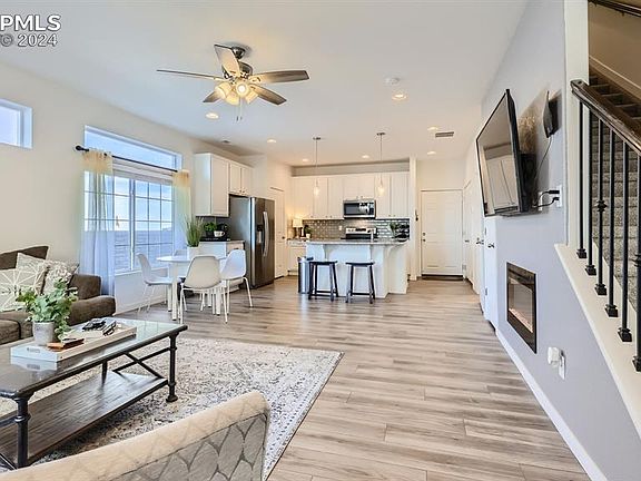 Look no further! Welcome to this (almost new) beautiful two-story duet-style home! Located in the highly sought-after community of Banning Lewis Ranch. Offering 3 bedrooms, 3 bathrooms (two full and 1 half bath), and 2-car attached garage. Giving this open plan a total of 1,642 square feet. Perfect for effortless entertaining! Natural light flows throughout the entire home, giving a welcome feel. The kitchen boasts sleek stainless steel appliances that compliment tasteful white cabinetry, subway tiles, and upgraded granite countertops. A large island with modern finishes maximizes use of the gormet kitchen. Need an electric car charger?? You're in luck! We have an electric 9 volt outlet in the garage. As well as-- Stagetically designed storage* under the stairs, & an electric fireplace*. Upstairs, the master suite has ample room for everything you need, including a sitting area. The exterior has strategically designed xeriscaped and is managed by the HOA allowing you to skip the mowing and spend more time with the ones you love. Banning Lewis Ranch includes incredible amenities such as a state-of-the-art rec center with a pool, water slides, splash pads, pickleball courts, parks, hiking trails, and summertime concerts. Easy access to restaurants, shops, Powers Blvd, and I-25. Stunning inside and out.