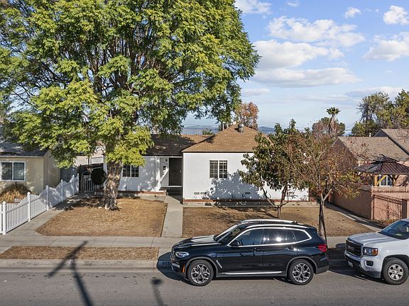 Beautiful single-story Arleta home of 3-bedrooms, 1-bathroom, and a detached 2-car garage with alley access is ready for new memories! With a neat front exterior populated by prominent trees and a neat walkway, discover the delightful airiness of the 1,072-sqft floorplan featuring pristine golden honey tone laminate flooring as sizable, mullioned windows filter in warming sunshine throughout. The open layout combining the living room and dining room creates a seamless flow for entertaining. Smooth taupe countertops are complimented by a checkered taupe and cream tile backsplash in this luminous kitchen housing ample built-in cabinetry plus convenient side yard access. Each of the three bedrooms enjoy a generous amount of built-in closet space and share the single common bathroom detailed with neat tile flooring, a shower-tub combination, and a pedestal sink. Outside, the backyard enjoys a covered patio space that's ideal for any summer get-together and an open yard that is prime for a personalized transformation. Additionally, the detached garage includes a separate bonus space offering a variety of uses. Located close to Target, the 5-Freeway, popular dining options, and more!