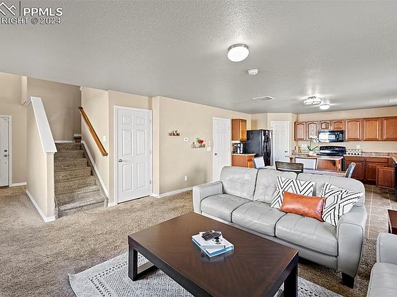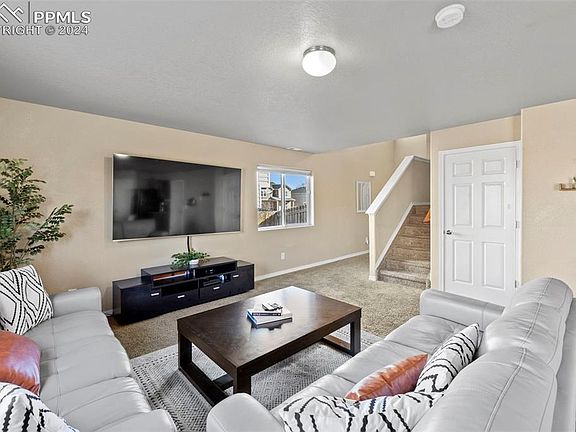 Welcome to your new home! Step inside to a delightful open space floor plan with natural light pouring in. The spacious living room leads right into the dining room and kitchen with large pantry and island. From the dining room, you can walk out to your backyard with privacy fence all around, enjoying a nice peek of the mountains to your west. The main level is complete with a half bath, coat closet and 2-car garage with charging station for e-vehicles. Upstairs you will find all bedrooms, an additional full bathroom, mechanicals to include a newer water heater and laundry room, with washer and dryer for your added convenience. The spacious primary bedroom features a bonus space perfect for crafting or working from home and includes your private master bath with access to the walk-in closet. Centrally located near Peterson SFB, Schriever SFB and Fort Carson. This community features a fire station, park/playground, dog park, skateboard park, basketball courts, and neighborhood trails. Schedule your showing today! Assumable Loan Available.