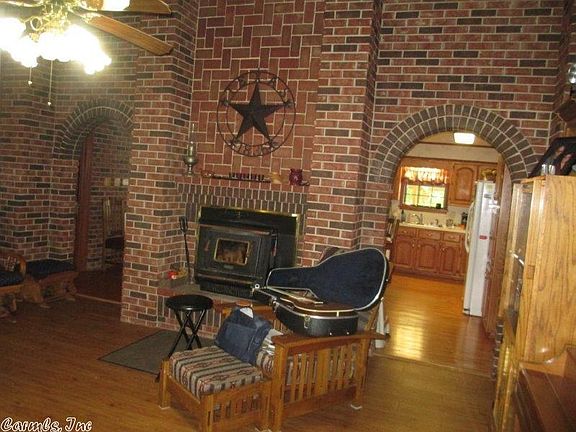 All electric brick house on 2+ acres with large shop, storage& remote gate on fully fenced yard. Newer metal roof, 16x24 covered patio & newer storm shelter. Shop wired for 30 & 50 amp for RV hookup. Refrigerator, washer & dryer will stay. This house features brick wood burning fireplace, vaulted ceiling in living room, new walk in shower, new back up generator connection, pull out cabinet drawers in kitchen & pantry. Close access to freeway & room for horses too!